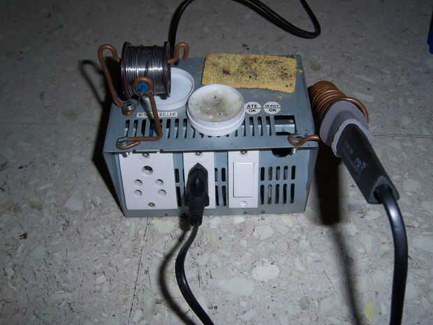 Como era calentar el soldador hasta demasiado y además no era fácilmente accesible. Decidí hacer una montura separada para él.
