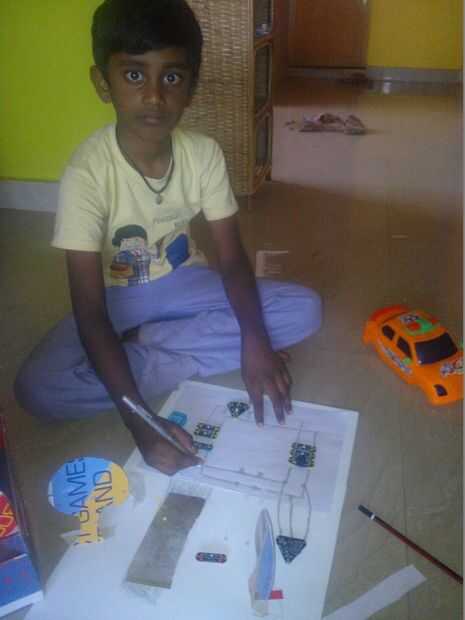 Luego tome otra hoja A4 y plan del circuito y dibuje el circuito. Después de fijar todos los componentes con la ayuda de la almohadilla de acero como se muestra en imágenes. Y los árboles.