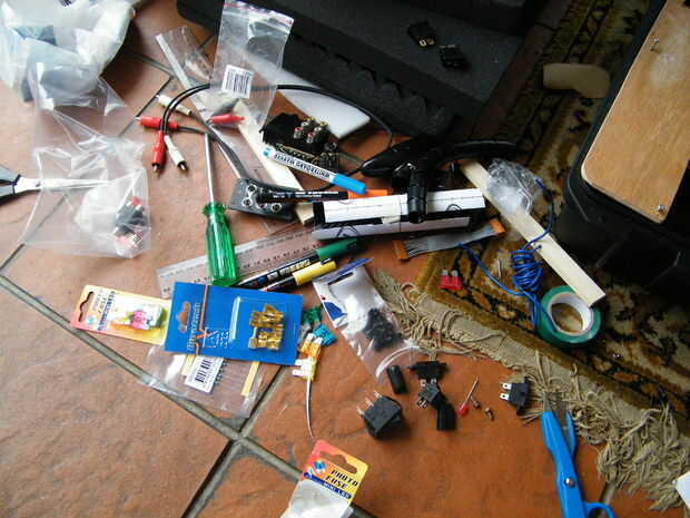 Tuve algunos grandes bisagras de plástico puesta alrededor así que hice un compartimiento para cables y la batería.