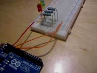 Conectar el pin 12 en el Arduino a la resistencia conectada a la luz amarilla.