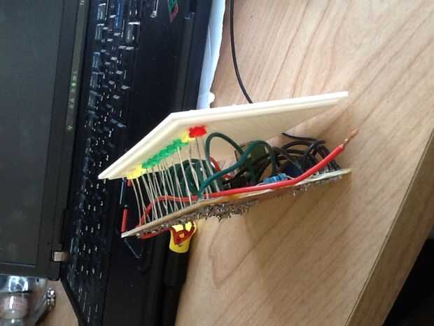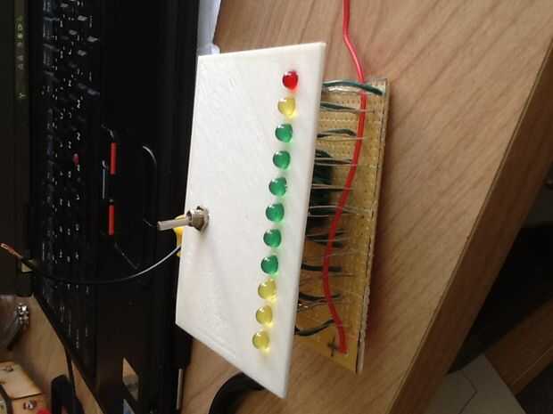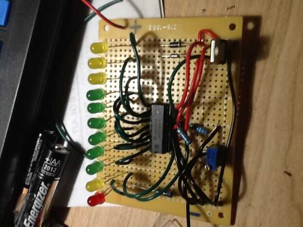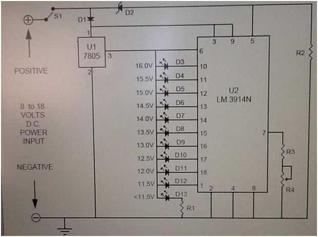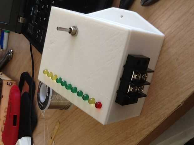 Es un indicador para las baterías lead-acid, es un LED bar voltímetro gráfico con una escala que comienza en menos entonces 11,5 voltios hasta 16 voltios.