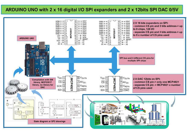 Así que he decidido estudiar este tipo de expansores. También utilizo una máquina de estado con multitarea a I/O control 16 digital y 2 salidas analógicas. Esta tarjeta está diseñada para controlar sistemas de automatización como un PLC.