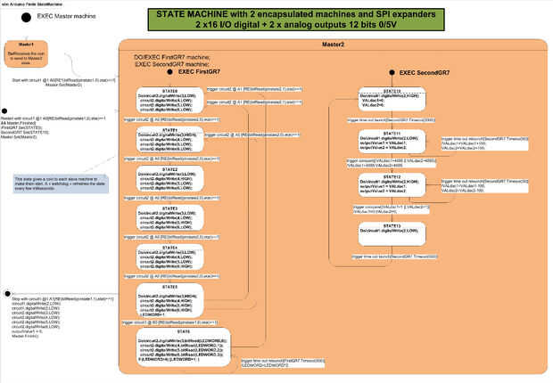Proporciono las librerías y el código fuente con un montón de comentarios. Para leer y entender, usted también debe leer a la vez el diagrama de estado o de la SFC.