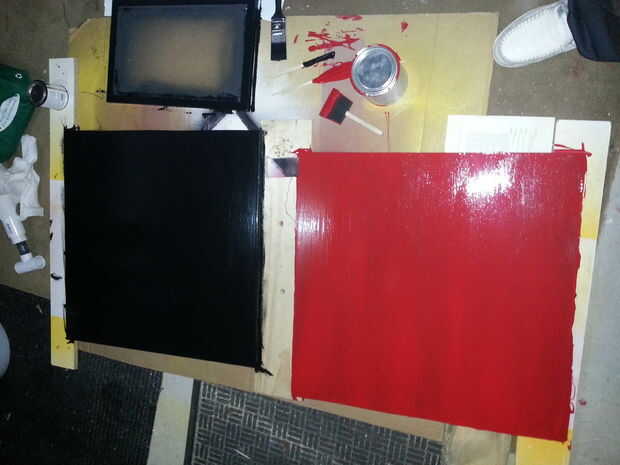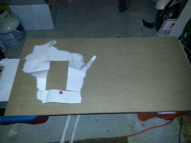 Vas a necesitar un pedazo de madera para este proyecto. Estoy haciendo dos así que corte un pedazo de 4 pies de madera por la mitad haciendo dos. Son cada 2 pies x 2 pies que mi contorno bastante bueno. Usé los tableros de mdf de 3/4 de pulgada que conseguí en la ferretería por menos de diez dólares. Luego lijar los bordes y la parte delantera. Luego usa un cepillo de pintura y pintado en los colores. Que este seco y comienzo clavado.