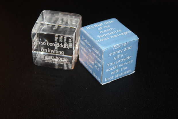 Cubo rodante de estado es un producto personalizado que puede ser a mano inmediatamente para ayudar a aliviar el estrés de la toma de decisiones al actualizar tu estado en Facebook.