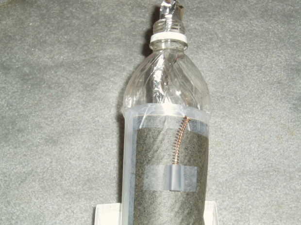 Tomar una tira de papel de aluminio y doblarlo para que se pueda introducir en la boca de la botella como se muestra.