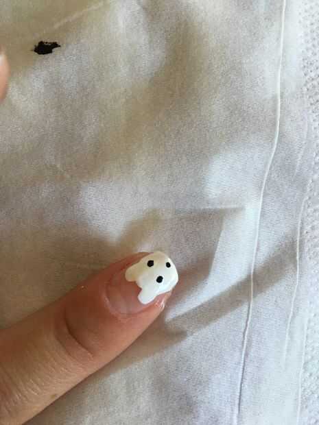 Para los ojos, usé un poco más de un pegote de esmalte negro en la punta, para hacer los ojos un poco más grande/mismo tamaño que la nariz. Tenga cuidado de no poner demasiado esmalte negro, ya que puede difundir o desordenar.