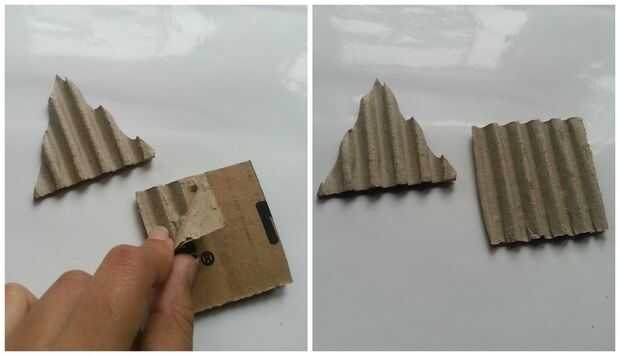 Después de que el pegamento se seca cuidadosamente retire la capa superior delgada de cartón para obtener la parte acanalada hacia fuera.
