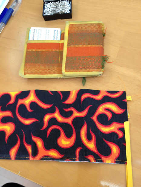 Empezar a aplicar la cinta de sesgo, otra vez donde te gusta y sólo tienes que ir todo el camino alrededor. Al llegar a los pliegues desiguales, poner algún esfuerzo en facilitar los bordes más largos, a veces poniendo en un montón de alfileres ayuda con esto. Usted puede coserlos antes de la cinta si quieres. Usted puede terminar con un pequeño pliegue o dos pero si has conseguido llegar los pliegues bastante centrados en las líneas de doblez, no afecta la cartera y no muestra siquiera.