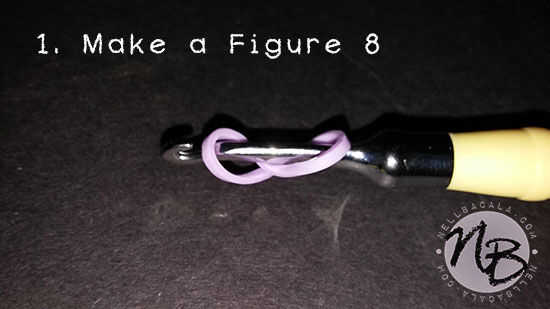 necesita un gancho telar del arco iris, un telar mini telar del arco iris y algunas bandas de telar del arco iris.Paso 1: Paso 1 Primero, tome cualquier banda y tuerza en una forma 8. colocar cada extremo en un lado del mini telar.Paso 2: Paso 2 añad