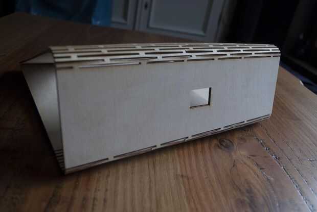 Pero fue a la baja, así que he hecho un poco más alto. Por eso se convirtió en la cosa para el ipad a largo, por lo he hecho más corto. Y he hecho un agujero en la parte posterior para los cables.