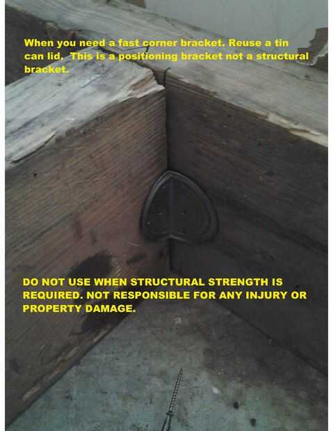 Reutilizar la tapa de la lata cuando se necesita un soporte de esquina rápidos para la celebración de dos piezas de madera en ángulo recto entre sí.