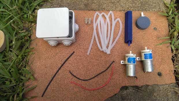 -Bomba de aire funcionando en 12v y baja (elegir dos bombas como quería aire en otra parte del Charco así)
