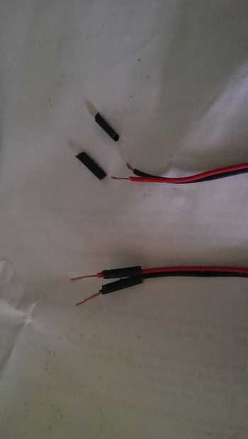 Lo primero es soldar los cables a las bombas como después de este proceso muchas partes se fusionaron así menos saturar el lugar / área de trabajo. Preparar los cables cortando la longitud que se necesitarían para conectar a la bomba y la toma de corriente, luego mueva los cables aparte, rojo y negro aparte, sólo para ser suficiente para poder llegar a las polaridades / terminales (+ y -) de la bomba y luego pelar un poco pequeño de plástico sobre los cables para exponer la parte de cobre.