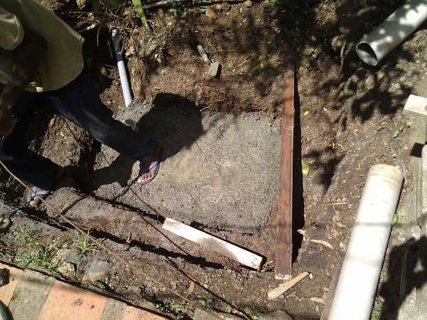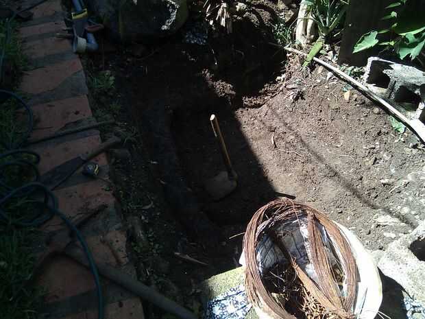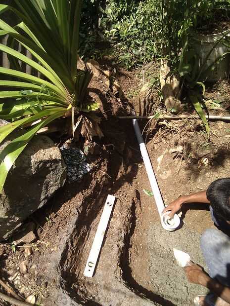 Luego empecé a cavar otra vez más más donde entré en contacto con raíces y rocas que afortunadamente fueron quitadas fácilmente. Mientras tanto en el suelo adicional de esquina rocas y raíz tuvieron que eliminarse para dar paso a la tubería de desagüe por teniendo cuidado de no dañar la línea de agua existente.