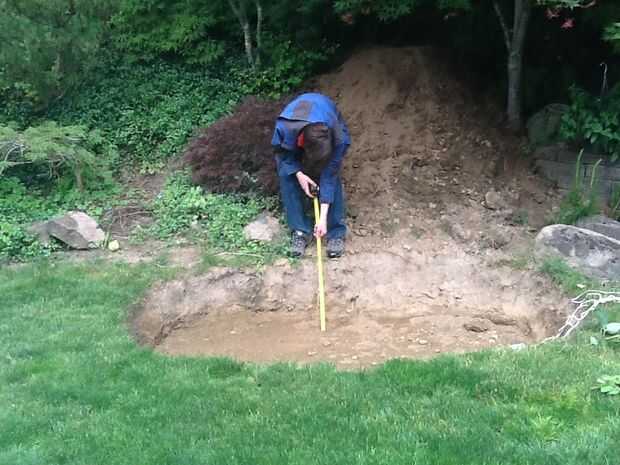 Qué tan grande quieres la charca depende de la estética, pero también pensar lo que quieras en el estanque. Koi necesita una gran cantidad de superficie y es mejor que por lo menos 3 pies de profundo para evitar ser comido por los pájaros. Goldfish es mucho más pequeño y puede soportar un estanque más pequeño. Mi estanque terminó siendo unos 9 pies de ancho por 4 pies y 3 pies de profundo. También puede un estante menor alrededor del perímetro del estanque para poner planes en maceta. También asegúrese de pendiente ligeramente los lados por lo que es más fácil cuando se pone en las rocas más adelante.