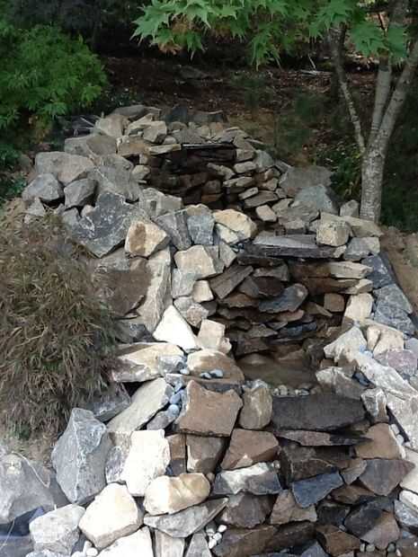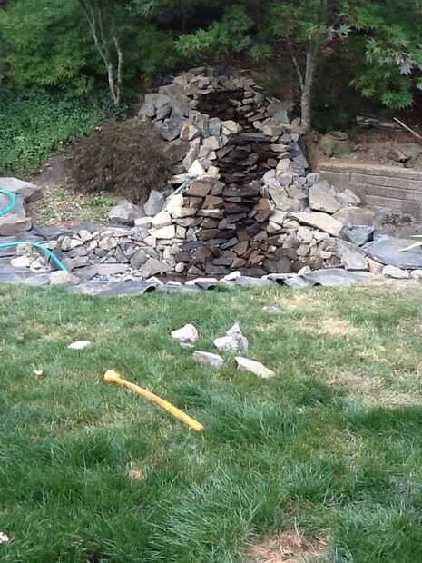 Esta es la parte donde finalmente necesita pegamento. Usted necesitará sello alrededor de su roca de derrame para evitar agua de justo debajo de él. Como se puede ver en la segunda foto, utilicé piezas planas de la pizarra en la parte superior de cada cascada. Use un sellador espuma de la cascada como la de la foto para pegar y sellar cualquier rocas que necesita. Como dije antes, mis paredes no alto bastante así que pegué las rocas a ambos lados de cada roca de derrame para mantener el agua en el camino correcto.