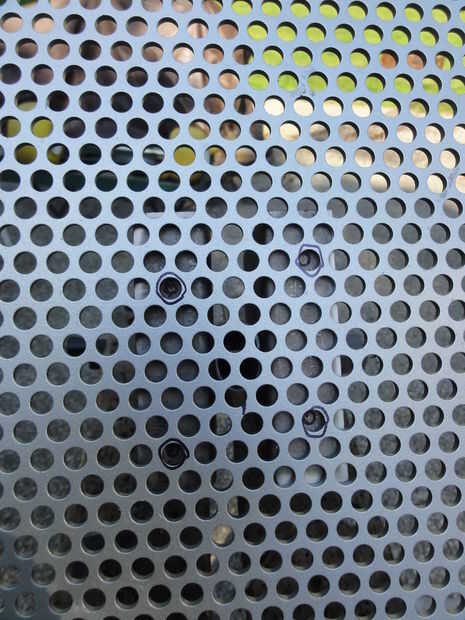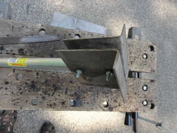 Luego coloca el poste y soportes en la cesta de la draga y marcado la ubicación de los agujeros de perforación en la parte inferior de soporte para la perforación y montaje de los soportes de la canasta con más tornillos de máquina #10 (3/4" largo de este tiempo).