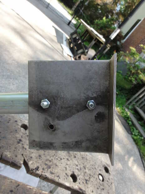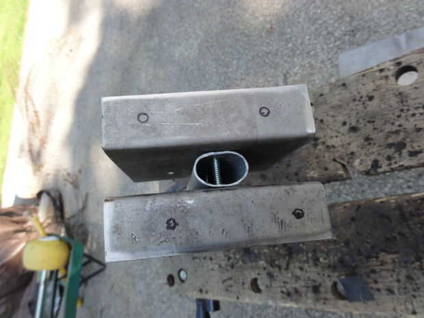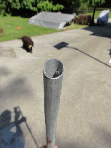 Golpearon abajo las últimas 6 pulgadas o menos de la vara para caber más firmemente entre las piezas del 2 soporte que el perfil de tubo redondo.