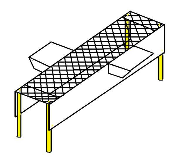 Mi novio recientemente había limpiado su cobertizo de almacenaje y ha sacudido algunas herramientas rotas de la yarda con asas perfectamente impresionantes. Yo, por supuesto, salvar lo que pude, incluyendo un rastrillo y se asa. Giré el rastrillo en mi estante de la herramienta de jardín pequeño y la manija cortar en cuartos y atornillada en el interior de los rieles de guía. Para la fuerza agregada, enroscada desde la parte superior de los tableros de plataforma con tornillos largos.