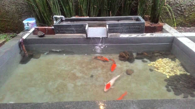 En 2016 temprano, tengo pensado decorar el patio trasero de mi casa. Tengo un patio con un tamaño de 7,5 x 3,5 m. Tuve una idea para hacer un pez de estanque en el patio trasero.