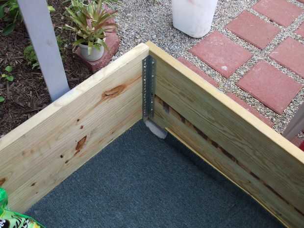 Paso 5: línea toda dentro de caja con lona para estanques (30 mil) y virada a superior borde de caja, utilizar tira de madera sobre el liner en la parte superior para no rasgar el forro de...
