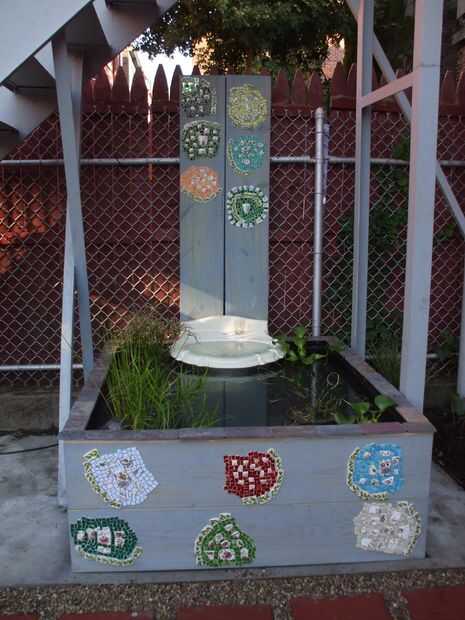 Paso 6: en el maravilloso cruce de construcción en Pittsburgh, encontramos un lavabo del baño no perforados para utilizar como una fuente de derrame con una roca sobre el agujero para regular el sonido del agua chapoteando...