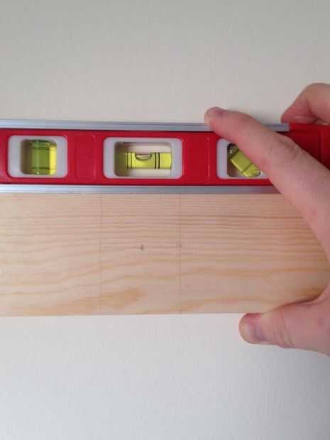 Con un nivel de burbuja, coloque la madera contra la pared y marque apropiadamente
