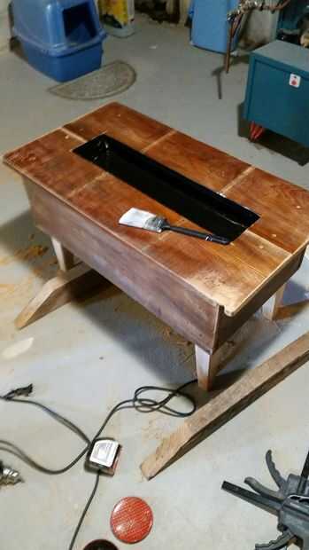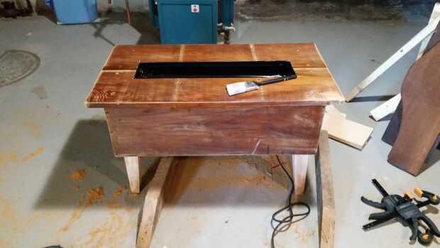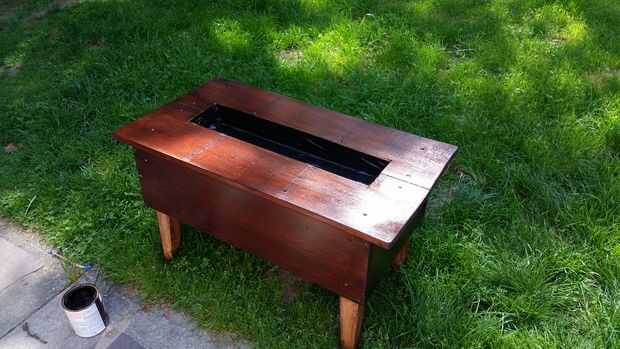 Llevarlo afuera para una limpieza rápida y una simple 1 capa de la mancha de la cereza negra y luego una capa de poli. Quería mantener algunas del desgaste y no totalmente la máscara con la mancha. También dejé todos los tornillos visibles ligeramente hundidos en la madera.
