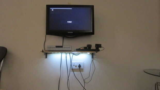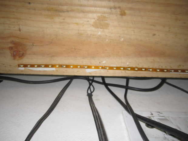He creado un transformador adicional menos fuente de alimentación de 12V que tira de la energía un LED y luego pegadas con cinta de doble cara con la plataforma para conseguir un efecto diferente:).