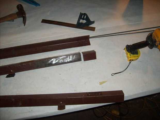 lo que utilicé fue viejos carriles de la cama que me dieron de la comunidad local freecycle (Miralos en freecycle.org). y alguna varilla de 3/16 de la romana local alguna cadena de enlace directo número 2 y algunos J de la ferretería. de herramientas tengo un pequeño alambre soldador recibió como regalo de Navidad hace unos años y amoladora dewalt, comprar en la tienda de empeño junto con la habitual medición y herramientas de la marca.