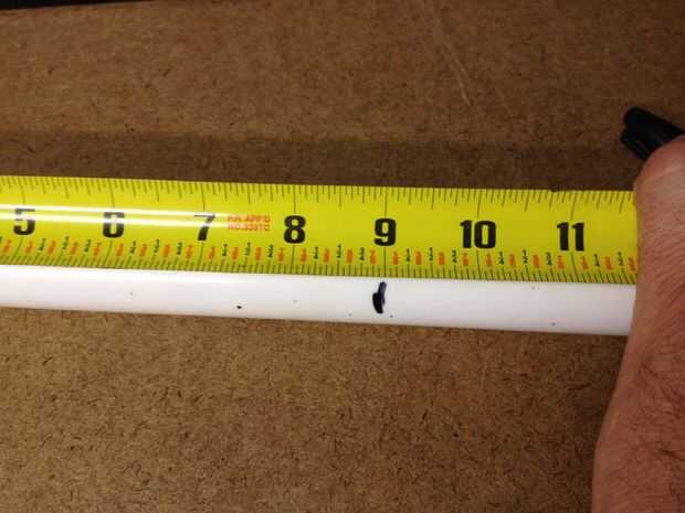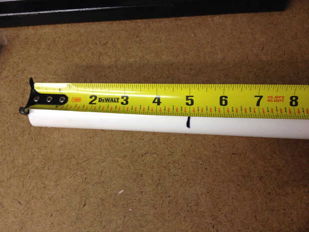 Primero mida el espacio que tienes disponible. Mina fue cerca de 10" de ancho y 6" de profundidad, por lo que el tamaño de la rejilla 9" ancho y profundo de 5" (al intentar cosas de tamaño exactamente al espacio, generalmente se convierte en una epopeya no, así que me fui un poco más pequeño). Para cada rack, medido y había marcado dos postes 5""vertical"(las piernas verticales) y un 9" "soporte" post (parte horizontal). Saldrá más cerca al nivel si los postes de la dos vertical son la misma altura. So...When que medir y marca, medir de 5" de cada extremo de la tubería de PVC. Si se intenta medir y marcar en una fila, el corte de la hoja de sierra hará una pierna ligeramente más corta que el otro. Dicho esto, si está usando una sierra para metales para cortar el PVC, la hoja de Sierra es tan estrecha no importa si medirlas todas a la vez y córtalos. Tengo pereza y utiliza una tronzadora para cortar más rápido. Pro tip: no todo rushy y descuidado y traer la tronzadora abajo en el PVC muy rápido, porque el PVC va explotar/la mosca (y usted puede mojar a ti mismo).