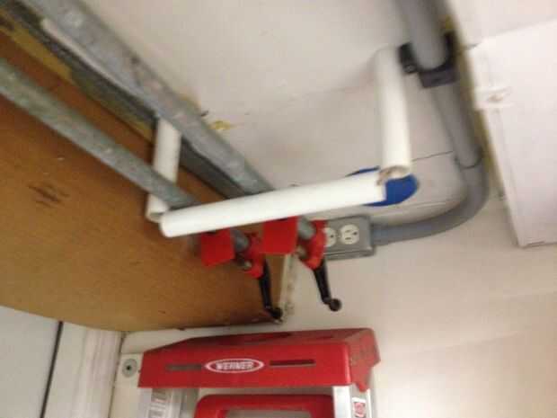 Ahora la diversión forma parte de la carga para arriba. Ser consciente - esto es básicamente algunas láminas de metal y PVC. Pongo algunas abrazaderas para tubos de luz de 1/2" en él. Planeo poner un poco de plástico y moldeado trim en ella así. Peso mucho más que eso y probablemente fallará. Si tu de va loosie goosie, y te mantenga doblarlo hacia atrás y hacia adelante, eventualmente fallará (fatiga de trabajar el material - google del metal...).