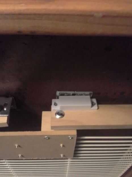 Os adjunto el pestillo gabinete magnético más grande pudo encontrar a los brazos de "frente" más largo y atornillado de las placas en la parte inferior de la tabla. Desafortunadamente, sólo el peso de la plataforma es suficiente para swing hacia abajo, por lo que tendrá que encontrar otro método de mantener escondido cuando carga.