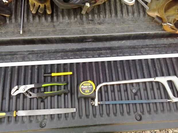 aluminio plano común. (yo usé 3/4" ancho, 1/8" de espesor) se necesita aproximadamente 3'. compré 8' por 10 dólares.