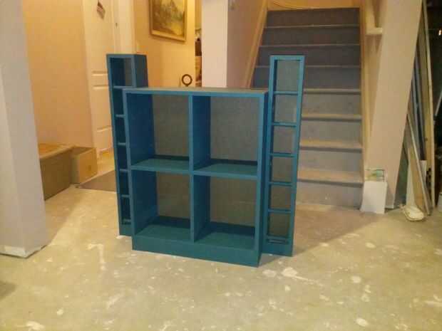 Para terminar este proyecto, primero lleno en todos los agujeros de clavos y otras marcas con masilla para madera. Después de que seca, lijar toda la superficie a partir de papel de lija de grano 100 y luego grano 220. Entonces di a los estantes una primera capa de pintura y luego volver a lijar algunas zonas con papel de lija de grano 220. He aplicado una capa final y después que secó clavó la madera en los estantes. Por último, os adjunto las estanterías de CD en el estante de vinilo.