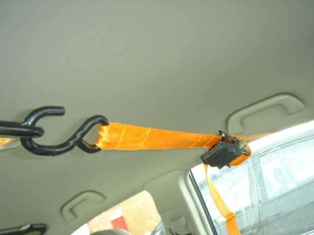 También puede colocar trozos de tubería interior bicicleta u otro material adecuado entre las correas y la carrocería donde contactar, para evitar daños anti-flanco rascando en burletes de puerta y pintura. Este estante es conveniente para llevar 2 x 4 y tal. Asegúrese de atar firmemente la carga sobre los travesaños. Yo personalmente uso cuerdas de amortiguador auxiliar de buena calidad para ello. Siempre conduzca con precaución, comprobando la carga es segura y no se ha movido después de conducir una distancia corta. Evite conducir demasiado rápido con las cargas de techo, especialmente aquellos montados sobre bastidores caseros. No necesito usar la carretera con lo que yo necesito como todos las grandes ferreterías cerca de donde vivo.
