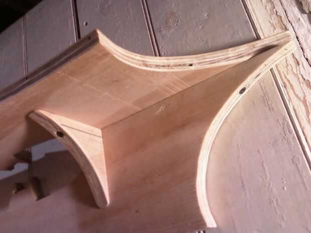 Sujeta los soportes para el panel, piloto perforado dos agujeros aproximadamente 2" separados por la parte posterior del panel dentro de los soportes, aburridos en las aberturas, añade un poco de pegamento para madera para ambos soportes y luego los atornillada al panel.