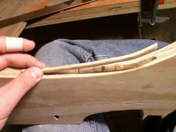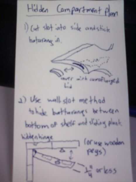 Una vez que los batarangs pueden caber cómodamente, corte pedazos finos de madera que empareja la curva del ala en el compartimiento, como las cubiertas que podrían caber y ser eliminadas mediante una cuchilla o un clavo (como se ve en las imágenes adjuntas).