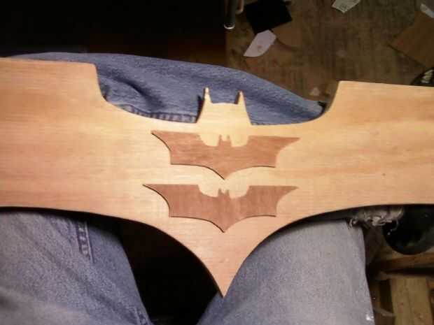 Hice los dos batarangs (al igual que los paneles de símbolo del murciélago) de madera contrachapada de 1/8" con mi sierra de calar.