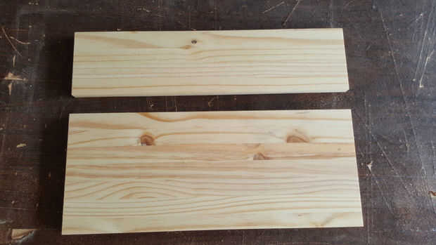 Empecé con un 5/8" espesor pieza que cruzo cortado a 19 3/4" de ancho. Luego arrancó un 8" pieza de la pared posterior y un 4 3/4" pieza para la pieza donde los agujeros son taladrados en. También corté 2 piezas para los soportes laterales que son 4 "x 4".