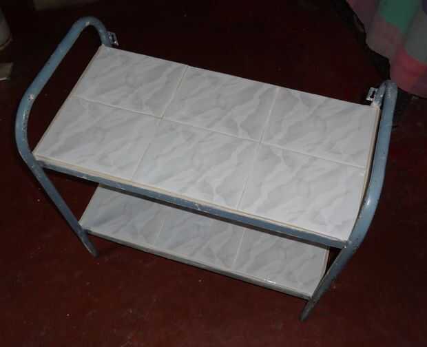 He ahora este estante por lo limpiar y alicatar a los miembros horizontales con algunos sobrantes de baldosas cerámicas.