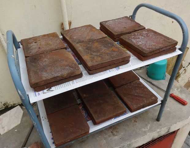 Coloqué un periódico sobre los azulejos pegados y coloca algunos pesos sobre ellos con el fin de proporcionar la presión para la correcta adherencia.