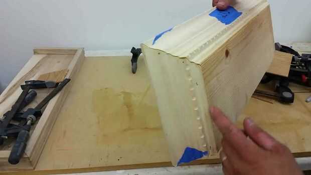 Sujete todas las piezas juntas. Este s un pegamento difícil para arriba y un par de Clavos brad puede provechoso. Recuerde cada agujero del clavo tiene que rellenar más adelante uso tan sólo unos pocos clavos.