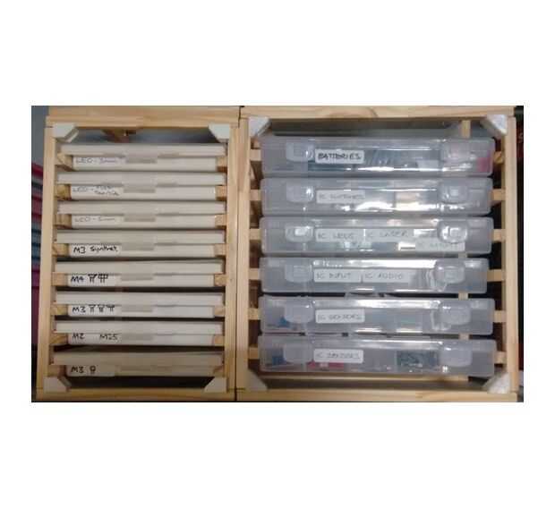 Problema es cuando usted consigue más de unos pocos, encontrar los componentes que usted necesita puede ser frustrante tener deslizar medio unos hacia fuera de una pila - inquietante la pila. Generalmente he construido parrillas para el contenedor por lo que se pueden deslizar hacia fuera de la pila similar a un empate.