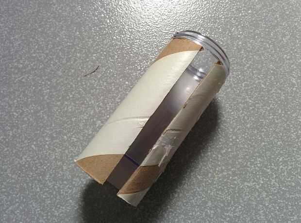 - Ahora Envuelva cinta adhesiva alrededor de la cartulina para cubrir bien. Hice esto para asegurar que el hormigón no puede alcanzar la superficie del envase.