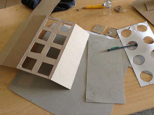 La forma de que esta construcción está diseñada utiliza una capa de aglomerado para el marco principal de las bodegas de cubby, junto con una mayoría superior cartulina para los agujeros decorativos.