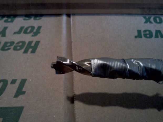 Voltea tu espalda pieza de moldura para que buscas en la parte que se enfrentarán a la pared. Los agujeros del dos taladro será fácilmente visibles. Comercio de drillbits a la broca de 3/8" y el centro derecha mas el agujero ya perforado. Profundizar hasta la cinta métrica que pones en la punta quede a ras con la pieza de moldura.