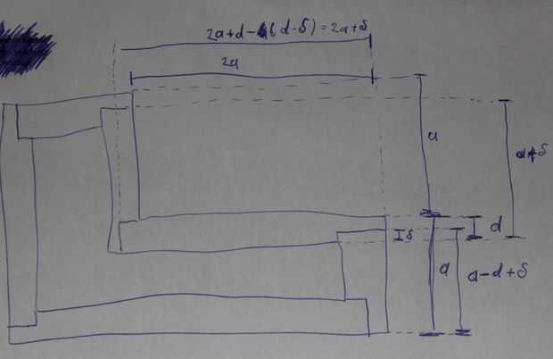 La longitud en cm de un borde interno es n * a + delta, la longitud en cm de un borde exterior es n * una-d + delta donde n es el número de cubos que se extiende por el borde, una es la longitud en cm de una plaza-elemento (25cm en mi caso), d es el espesor de la Junta, delta es la profundidad de cola de Milano corte conjunta (esto depende del diámetro de la broca de fresadora Encontré esto por ensayo y error, como no hay documentación para mi plantilla).