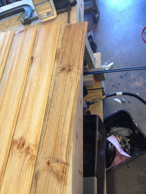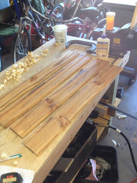 Coloración: Para obtener el tipo de look bicolor en el grano de madera, usé un 2 paso proceso de tinción. Primero yo cubrir los tablones con "golden oak". Después de unos minutos luego usé un "rojo caoba" parcialmente diluido y limpiar inmediatamente cualquier exceso. Las áreas de grano empaparse de mancha más luego las partes lisas. Y, la primera capa de color claro color oscuro penetre suave puntos, mientras que las zonas granuladas sediento para sumergirse en el oscurezca segunda capa. Puedes ver en la primera foto de las tablas como el original "golden oak" color compara tablas a uno (a la derecha) con un tratamiento secundario mancha oscura. La segunda foto es cómo miran con la segunda capa oscura.